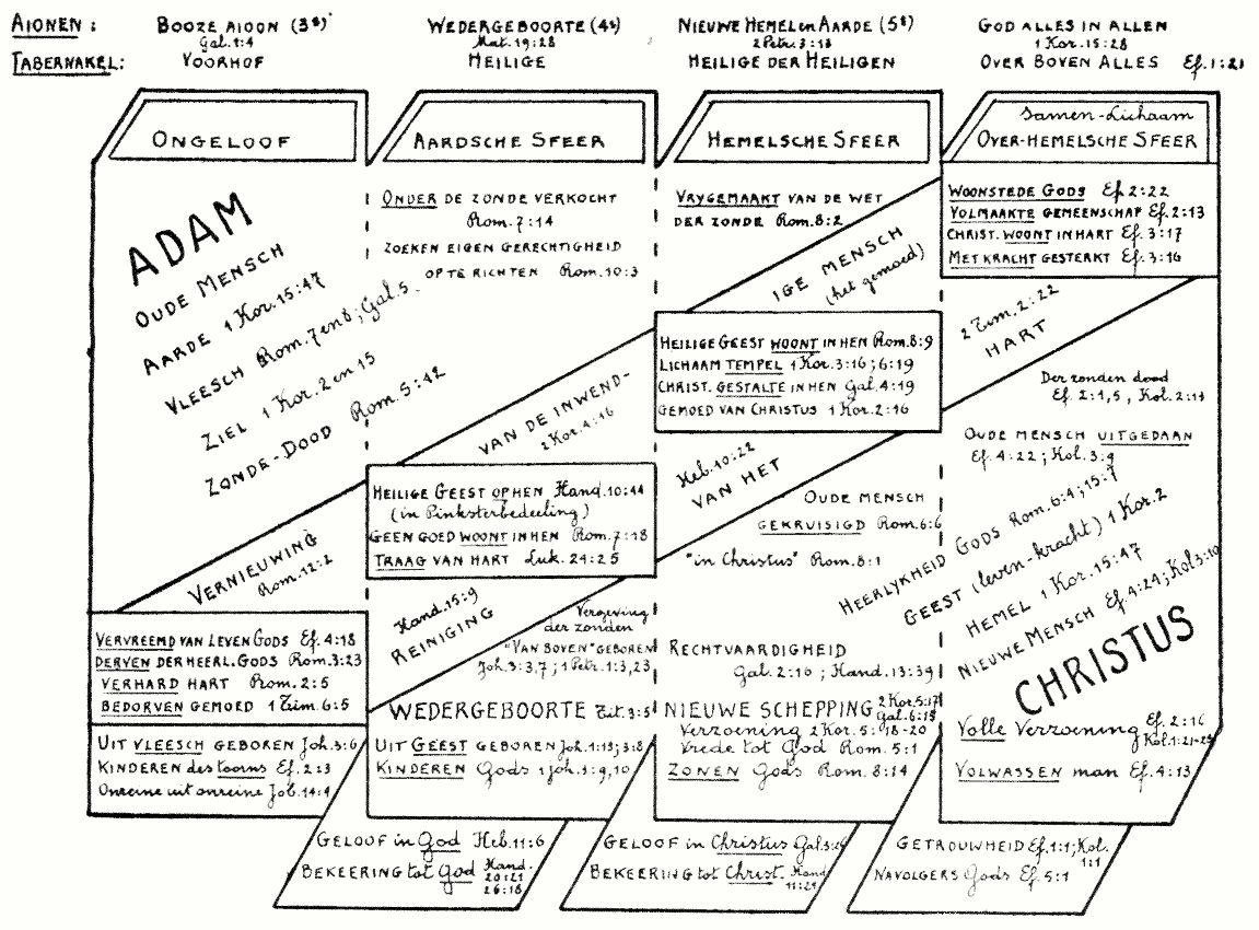 Wij have getracht om de indeling, exact te kopiëren en hebben alleen het oude Nederlands zoals b.v. , « mensch » in plaats van « mens » en « bekeeren » in plaats van « bekeren » zoveel mogelijk aangepast aan de moderne schrijfwijze. U kunt ook een PDF versie (1.4 mb) van De Weg der Behoudenis downloaden en installeren op uw computer. |