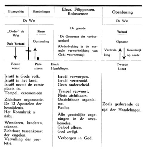 Deze « bedelingen » zijn door een groot aantal ernstige schrijvers onderzocht, vooral in de Angel-Saksische wereld. Maar het moeilijkste probleem in dit opzicht is dat met betrekking tot de tijd, die volgt op de kruisiging: de periode, beschreven in de Handelingen der Apostelen en de huidige periode.
